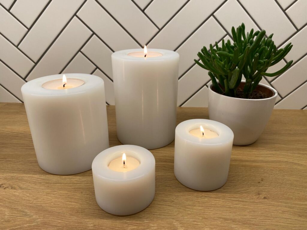 Wystarczy zastosować podgrzewacz typu „tealight” (37 lub 60 mm w zależności od średnicy świecy bryłowej), aby cieszyć się nieprzerwanym płomieniem przez długie godziny bez ryzyka zabrudzeniem topiącej się masy.